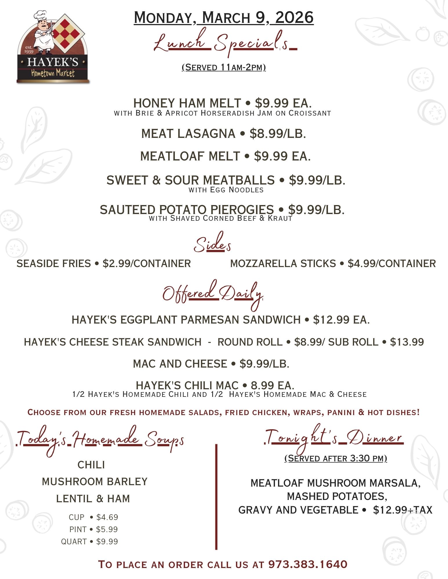 Visit us today and experience the warmth and tradition that make Hayek’s Market special!